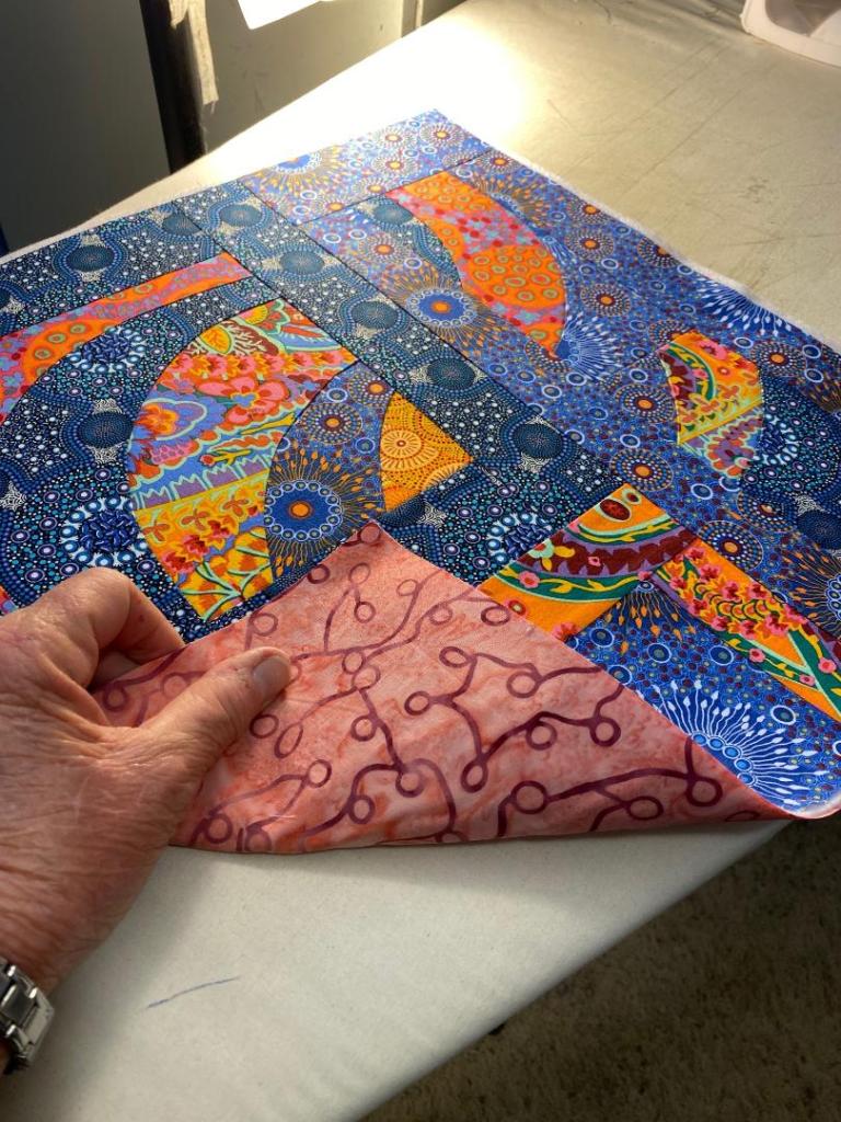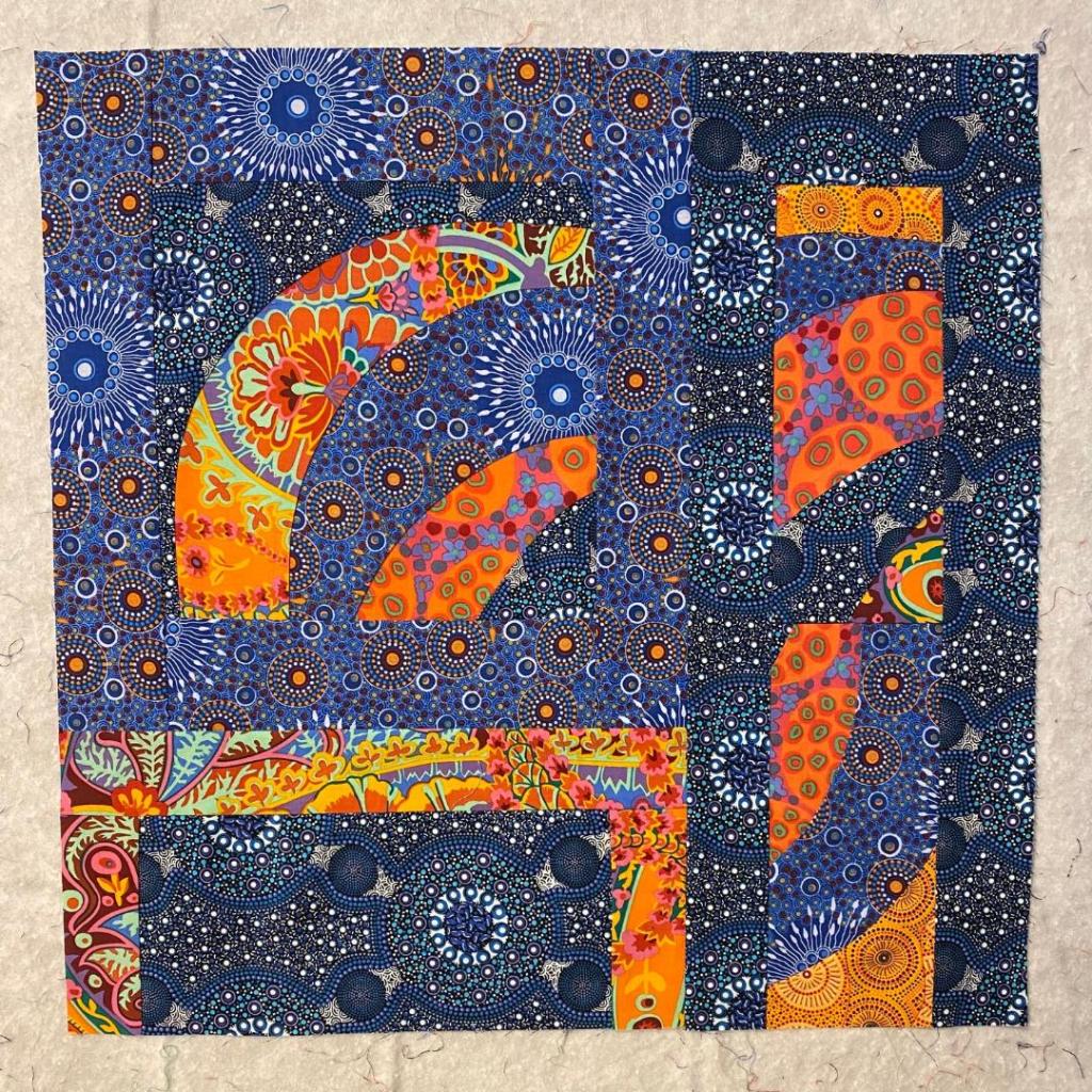 I just love the combination of blue and orange! And I love the combination of Aboriginal and KFC fabrics. They really work nicely together. And I love orange. Orange gets a really bad rap. But it’s a really spectacular color!