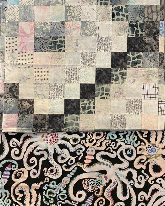 The Octopus fabric will back my Ice Storm trip quilt. I LOVE this backing with this quilt top!