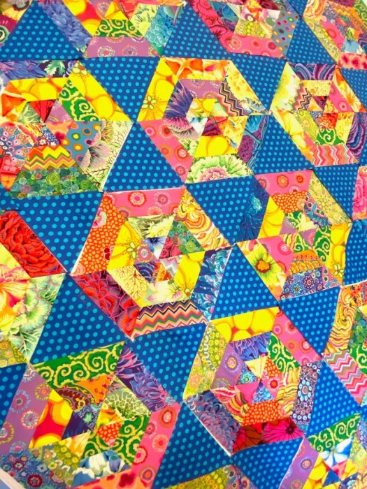 1. I love the fabrics, but it’s all a jumble. I think because the fabrics are all the same scale and too similar. A friend of mine mads a similar quilt and hers is so much better. She had more differences in scale. It made a big difference. But the fabrics and colors are gorgeous!
