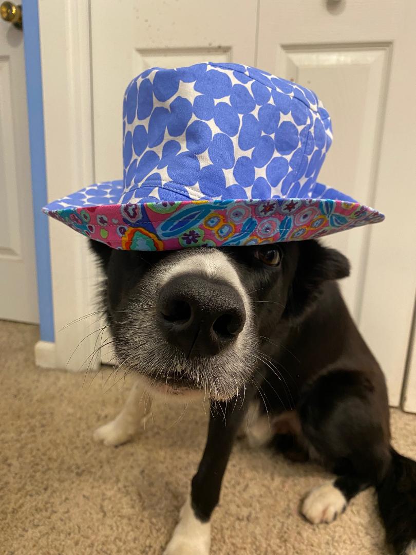 8. Ricco gets to model now. Hope Bender’s not jealous. Great job on the hats. Love the blue fussy cut. There are so many flowers by you. Wouldn’t it be great if Phillip came to visit and get inspired. I see so many of your pix that would be great for him.