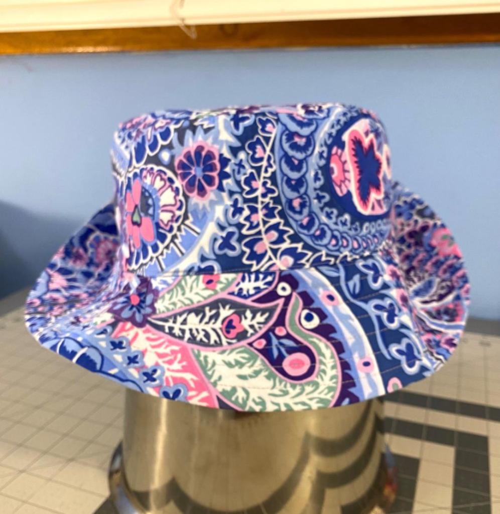 I got home at a little before 10 pm and hit my sewing room to put together another hat that I had cut out and ready to sew. It took me about 90 minutes to sew it all together.