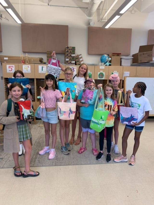 Andrea also sent photos of the students from a summer camp she taught and their bags. They started with some crumb piecing and used a pattern called Mod Dog from Modern Quilt studio. Take a look at this bag made by a student. I just love it and had been thinking about incorporating this block at some point.