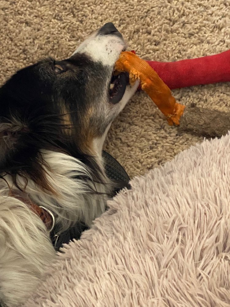 Yesterday I took Rico to his weekly sheep herding lesson and we worked on shedding again. We had a really good lesson. After our lesson I met my friend at the field with the creek to let the dogs run. Rico love’s my friend’s dog Jolene. He thinks she’s very cute and she tolerates his attention.