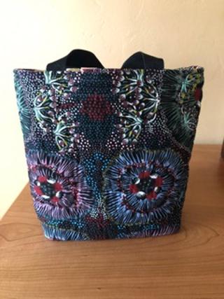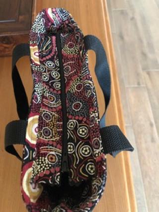 This next bag was made by Cindy Clark. She mad the bag smaller than my tutorial instructs. I love the dark Australian Aboriginal fabrics she used and a smaller version is a great idea! This is the 12th Frankenbag she’s made!