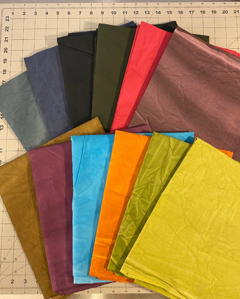 While we were up in Washington for Rico’s lesson, I decided to stop at a quilt store called Fiddlesticks. I was there a couple months ago and saw some really cool muslin that is dyed and has wrinkles and creases, and is heavier than a typical quilting cotton. I didn’t buy any at the time because I had no idea what I’d do with it. But I loved it and think about it occasionally. So today I bought a bunch of half yards.