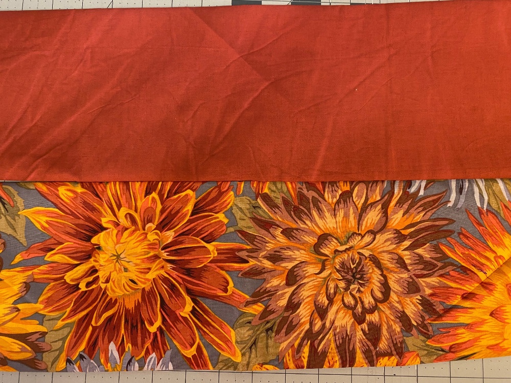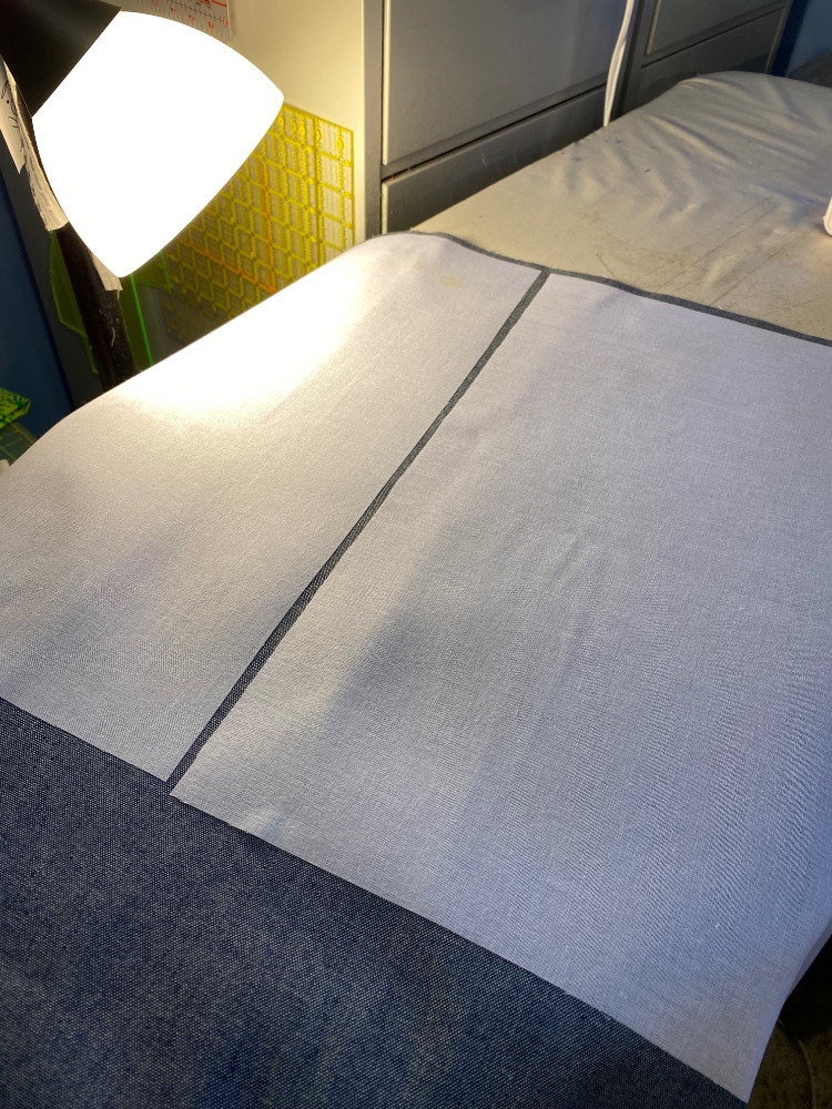 I did it this way because the denim is 50 inches wide and I can’t get the full width on my cutting mat. Rather than wrestling with all that bulk and trying to cut it straight, I just did it this way and it worked well.