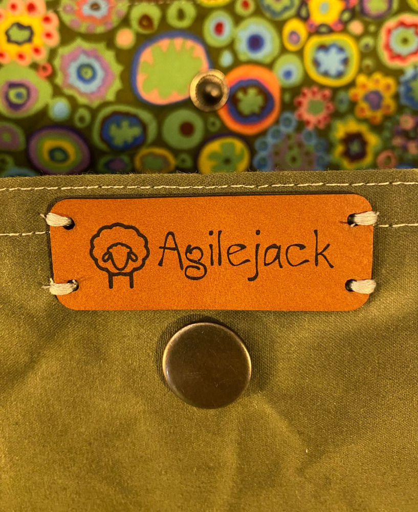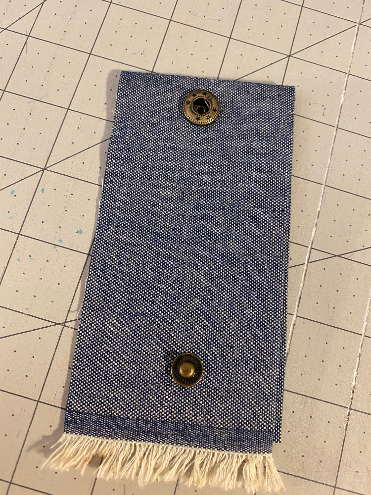 I went back and forth on where to put the tag… above the snap, below the snap, off to one side. Here’s what I decided on.