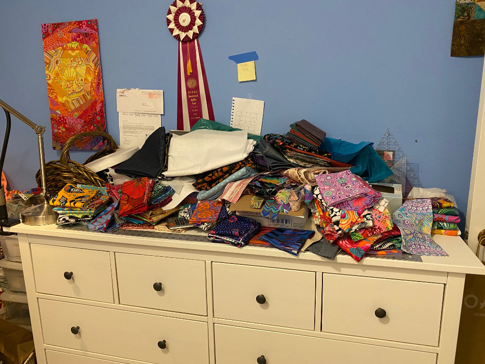 This dresser holds most of my KFC fabrics. Except for the 4,000 pieces that are piled on top of it.