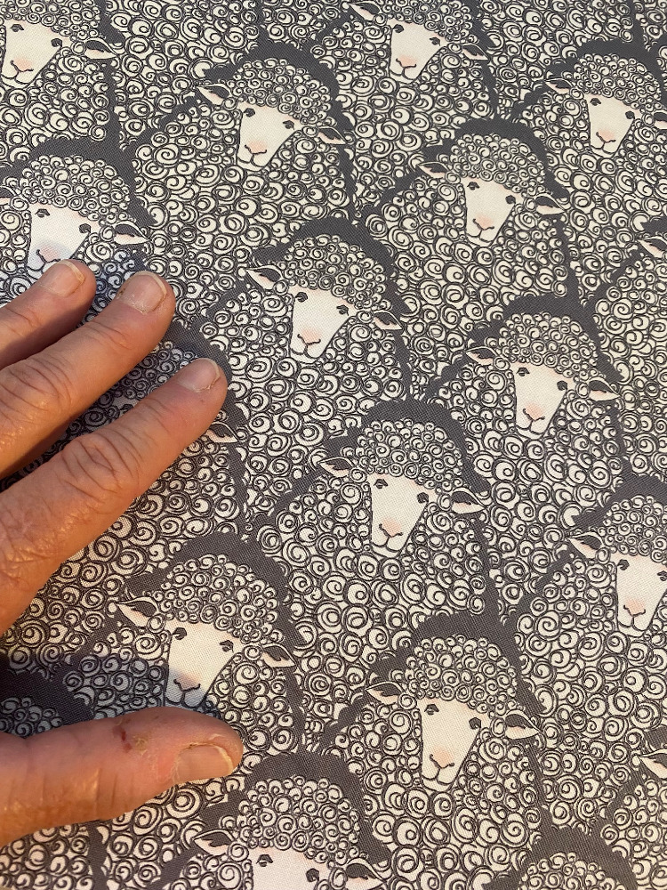 Once I got home I hit my sewing room and whipped up another bucket bag. I chose this mauve-ish color and paired it with a fun sheep fabric I’ve had for some time. The pink noses of the sheep match the mauve fabric perfectly!