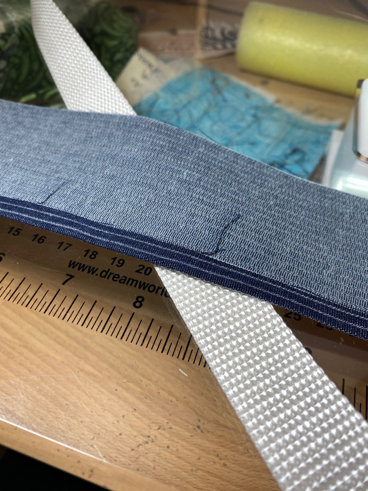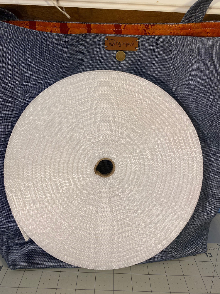 I bought the 3/4 inch width. It will be good for handles for my Frankenbags. It may be a little thin for a single shoulder strap. I might end up buying some in a little wider width. I won’t buy it right away… not until I know how it sews up.