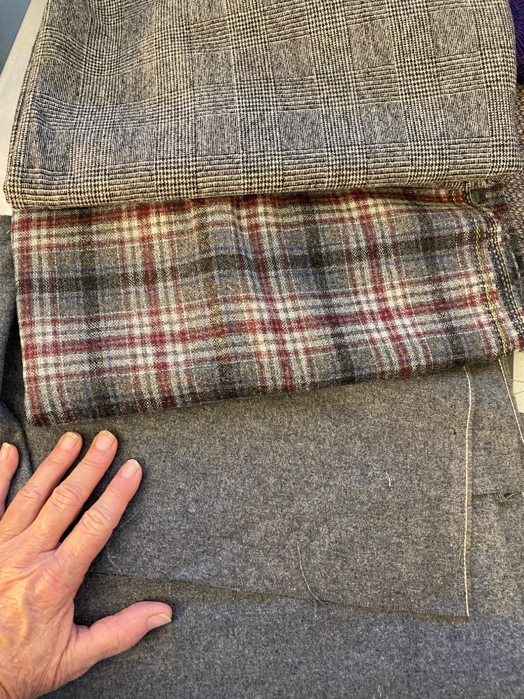 When I left in the morning I had seen a sign for an estate sale near my house. I just LOVE estate sales so made a point of stopping by this one on the way home and I’m really glad I did! I found a bunch of wool fabric and I think most of it is actually Pendleton wool. I got 13 yards for $39!!! This is such a steal! I’ve coveted Pendleton wool for some time but could never make myself pay the high per yard price. Here’s what I got.