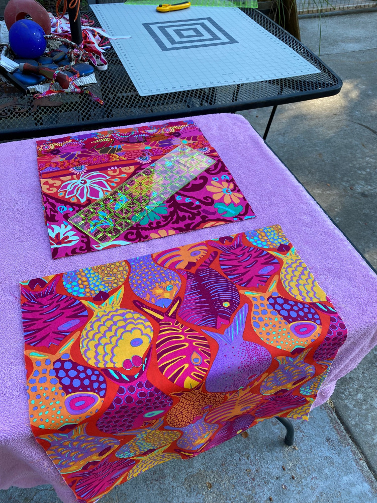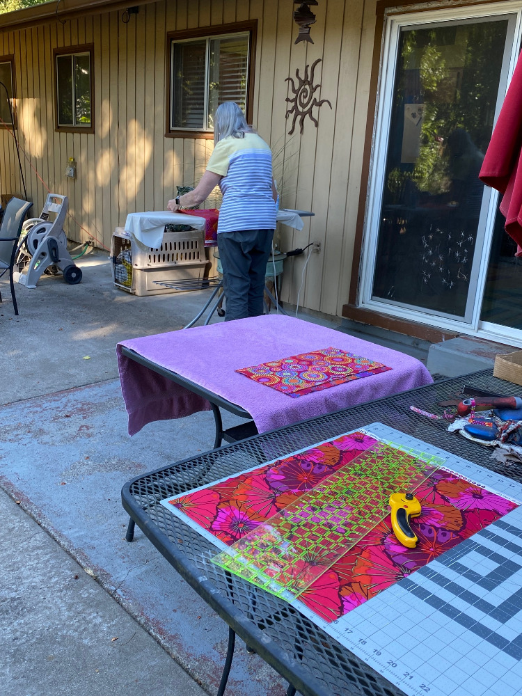 Looks like you’ve got some great teamwork going on your patio. Nice that you can work outside. Can’t wait to see what this new project looks like – big pieces for a change. I’m on the verge of starting a big piece project also – a design from Lea Louise that I found on YouTube. J have some newfound energy for sewing and I want to take advantage of it while it lasts. Have a wonderful time with your friend!