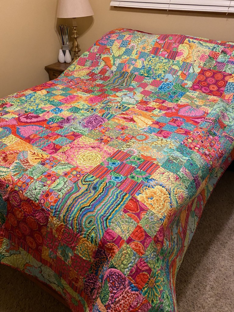 Amazingly, of all the KFC quilts I’ve made, this is the first one that I will actually USE! Others have been given as gifts or sold. I’m looking forward to snuggling in under that gorgeous cotton!
