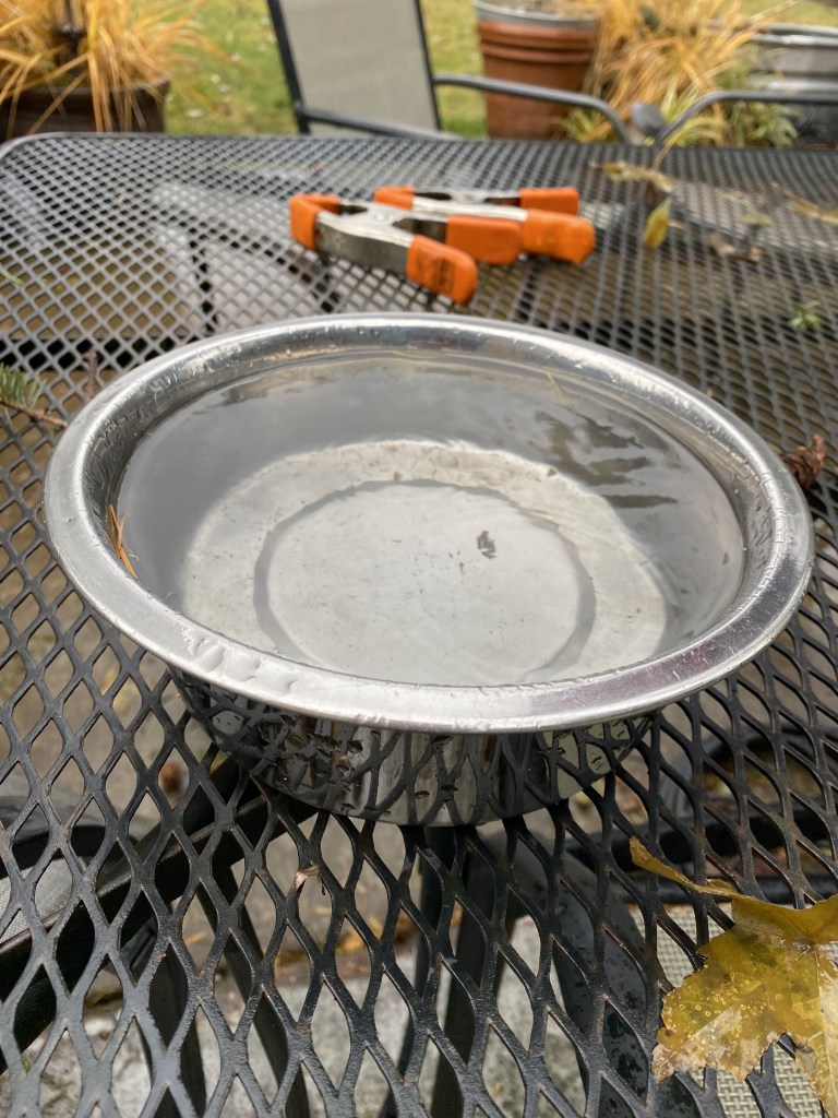 We had another wind storm over the last couple of days, with lots of rain. I got about three inches of rain from Sunday afternoon to Monday morning. I emptied this dog water dish on the patio on Sunday afternoon. It was full Monday morning!