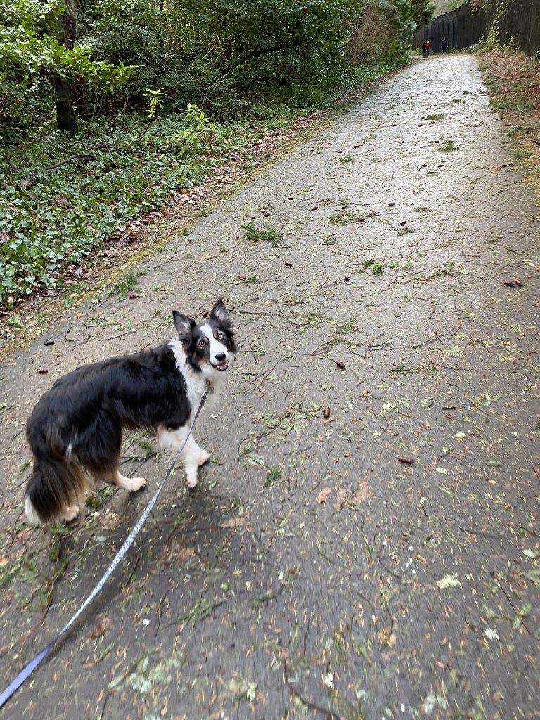 I took the boys for a nice long afternoon walk while it wasn’t raining and before it got dark today. All the flotsam and jetsam from our wind storms had been cleaned from the path since we walked yesterday.