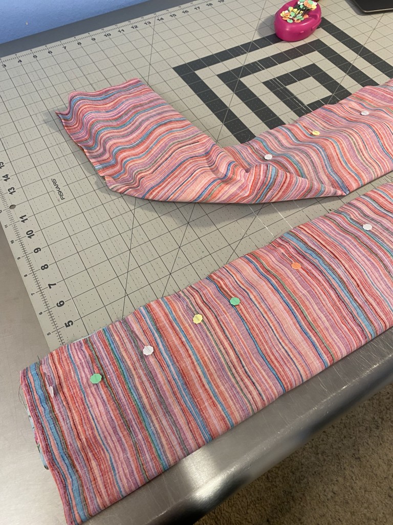 One thing I love about these pillow cases is that they’re made with the burrito method, which means you sew the pillow case body and accent band inside the cuff (the pink stripe in my pillowcases).