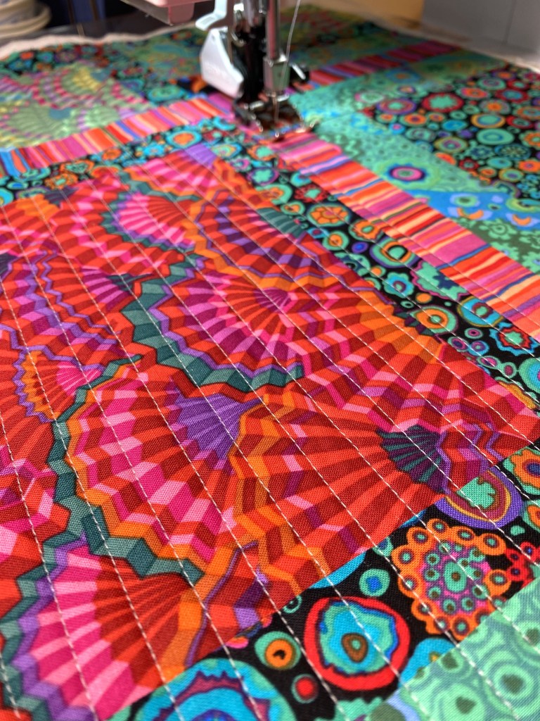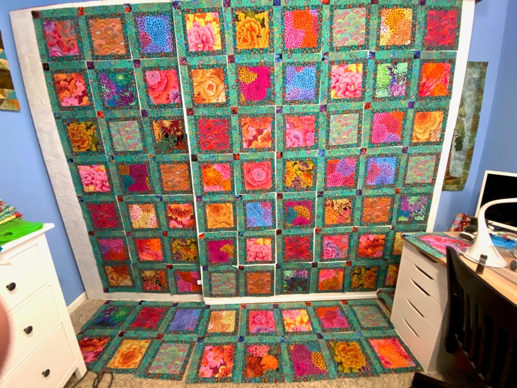 Then a few days ago I got an email from Hancocks of Paducah… who is having a nice sale on KFC fabrics. So I purchased two pieces that will be eventual quilt backings. One for my recent orange/pink/purple quilt… this one…