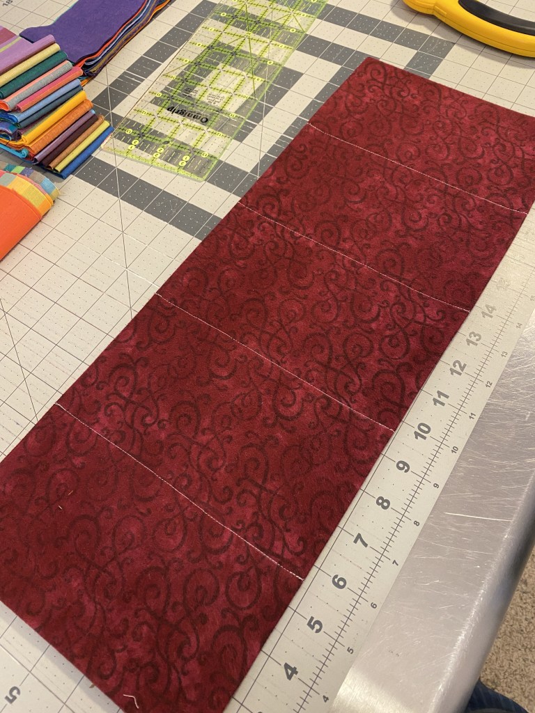 Turn this piece right side out and press. It should now measure 20 inches by 7.5 inches.