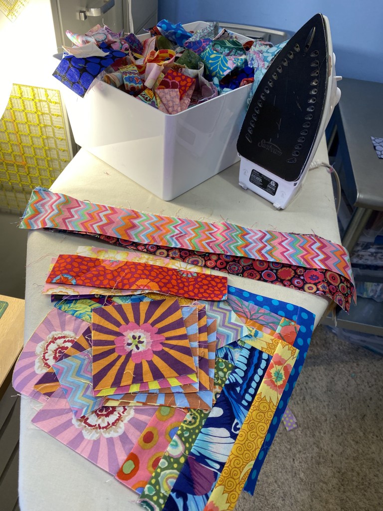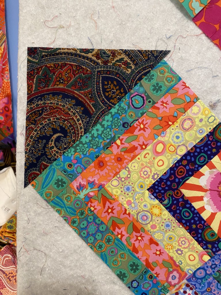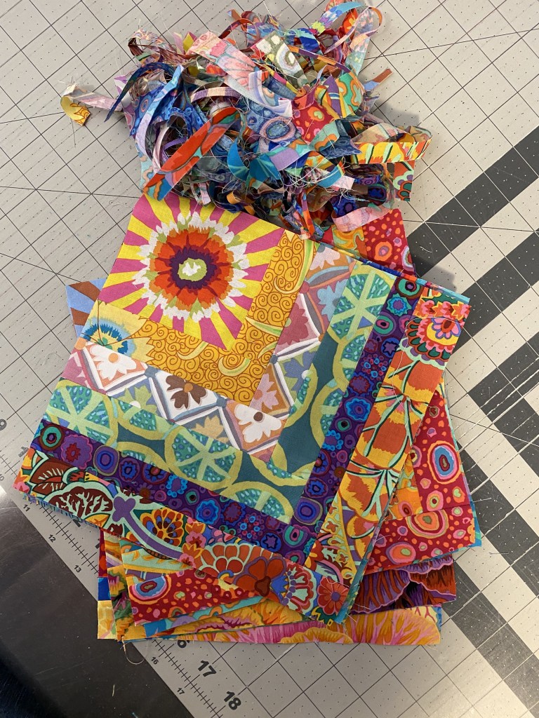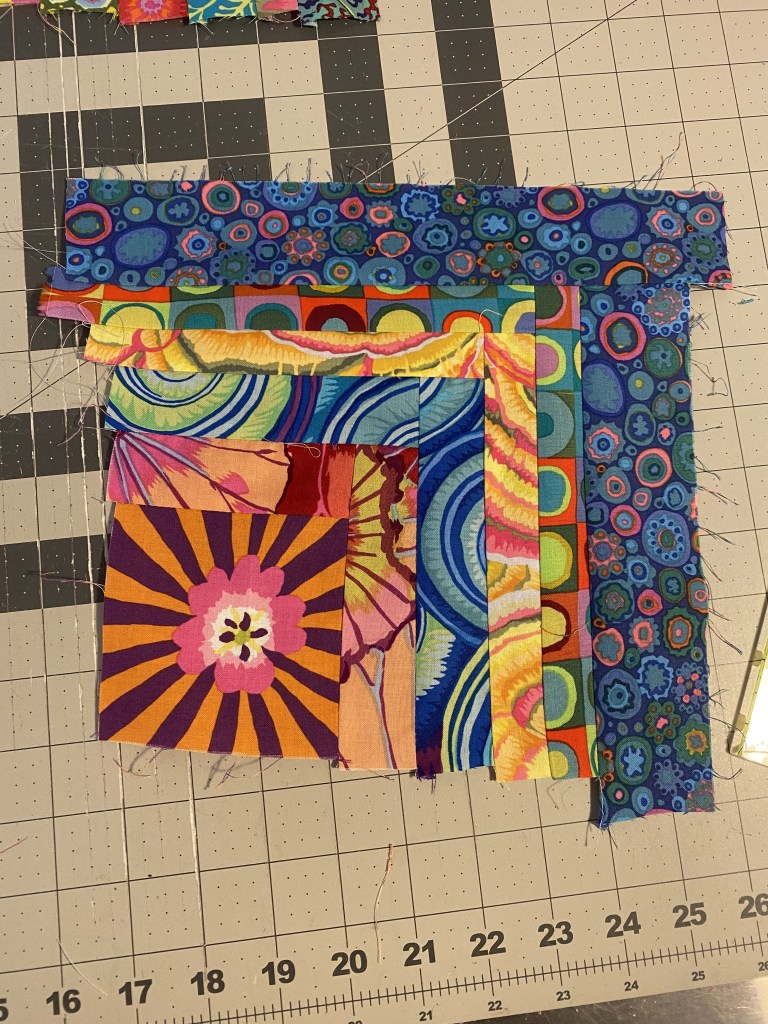 And immediately after doing that, I noticed that there were a couple strips of these sunbursts in the pile of scraps that I was using to make blocks last night.