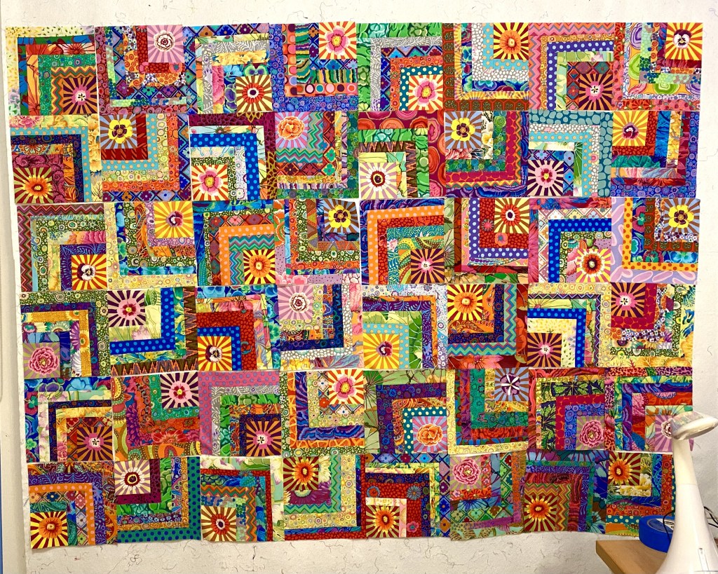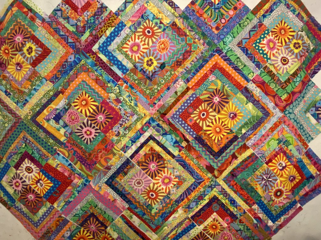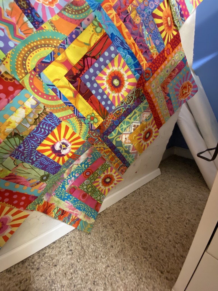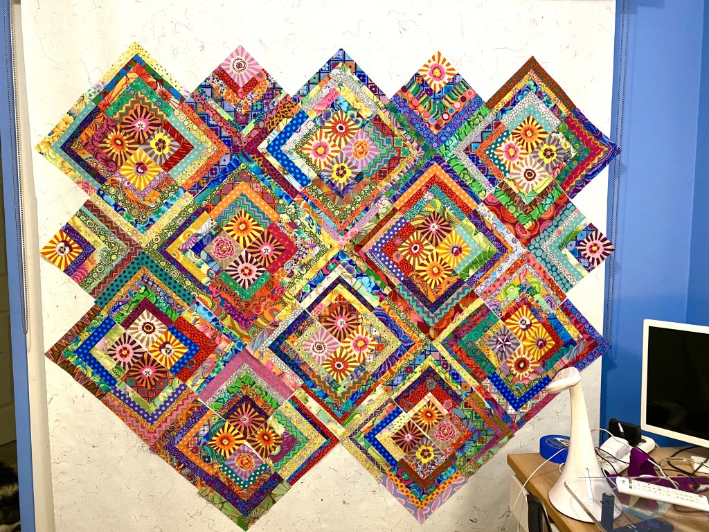 And immediately after doing that, I noticed that there were a couple strips of these sunbursts in the pile of scraps that I was using to make blocks last night.