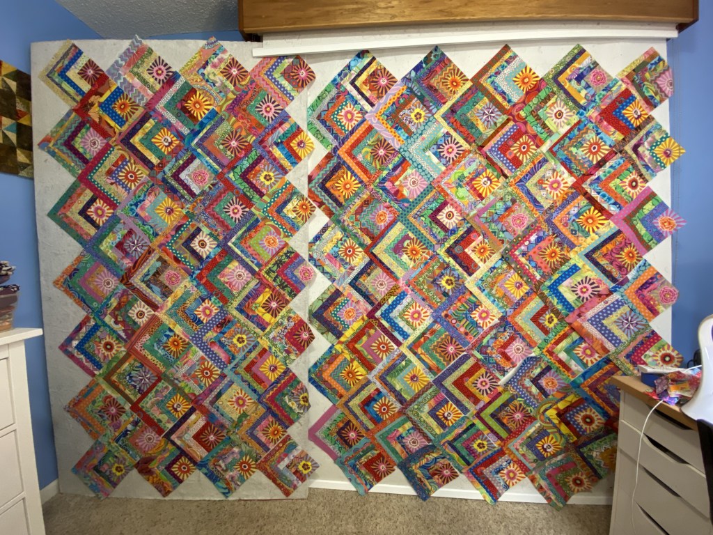 I ran across a video tutorial today that is a really good explanation of how to cut setting triangles. It’s sort of extra-mathy. Math is not my strong suit. But it has really good explanation of how to calculate, cut and handle your fabric to make sure you’re not putting your bias edges in the wrong place. That’s pretty important