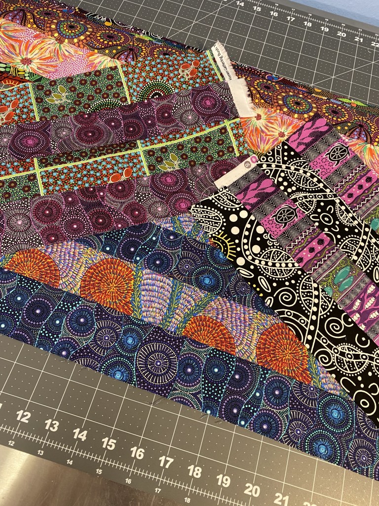 I just love the Aboriginal fabrics. But they are not in a lot of quilt stores. I’m lucky to have a couple of store that have a good selection of them. They are fabulous!