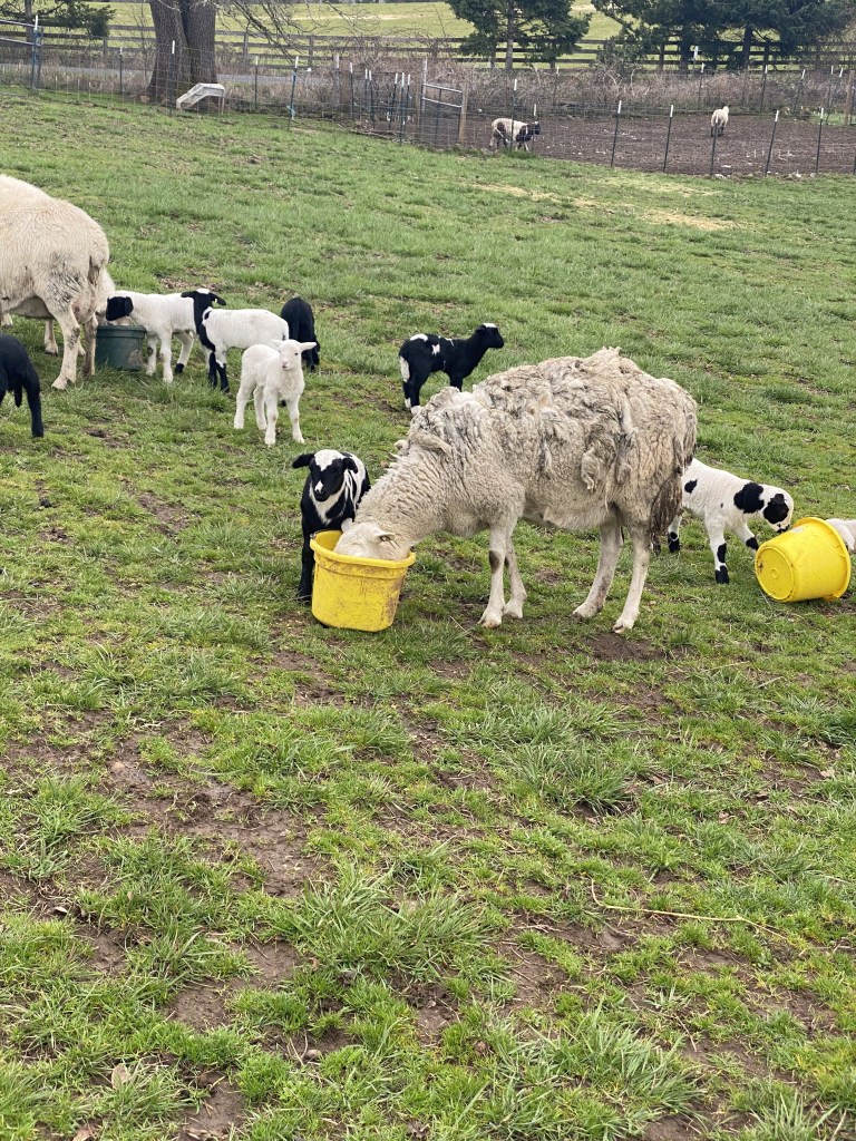 When the ewes see you walk through the gate with the grain they come running. They have their noses in the grain the minute it’s in the bucket.