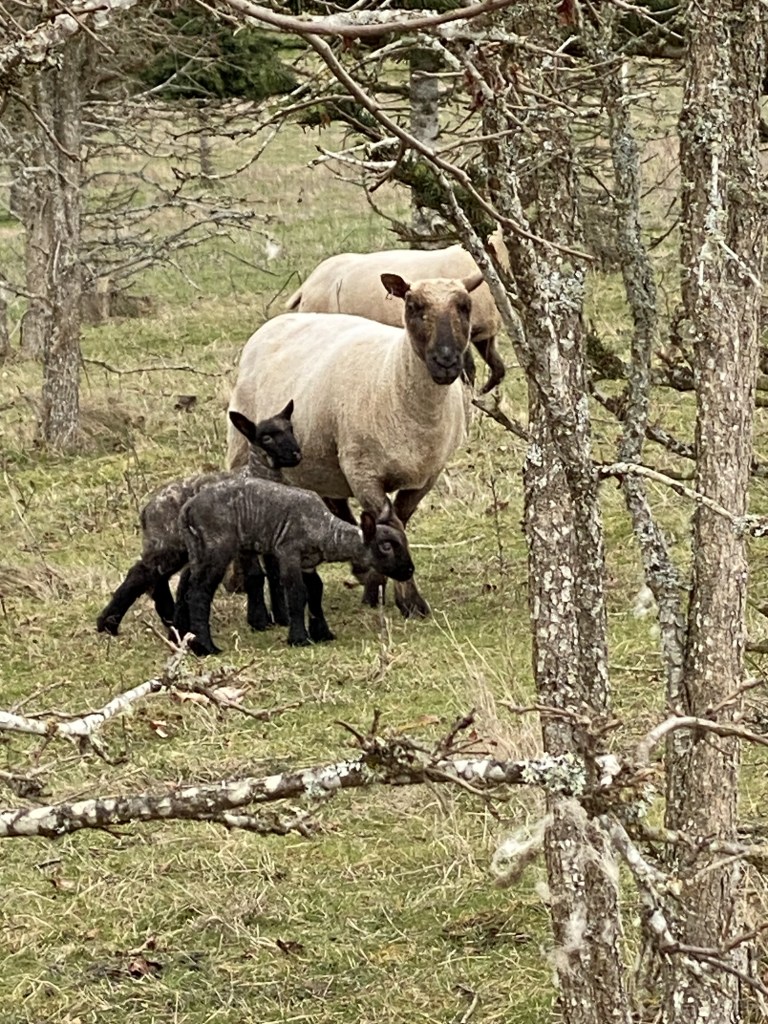 We kept driving around near the trees and spotted another ewe with two lambs… one of them was pretty tiny. Both ewes had moved away from the rest of the flock and were in the trees on their own with their lambs.