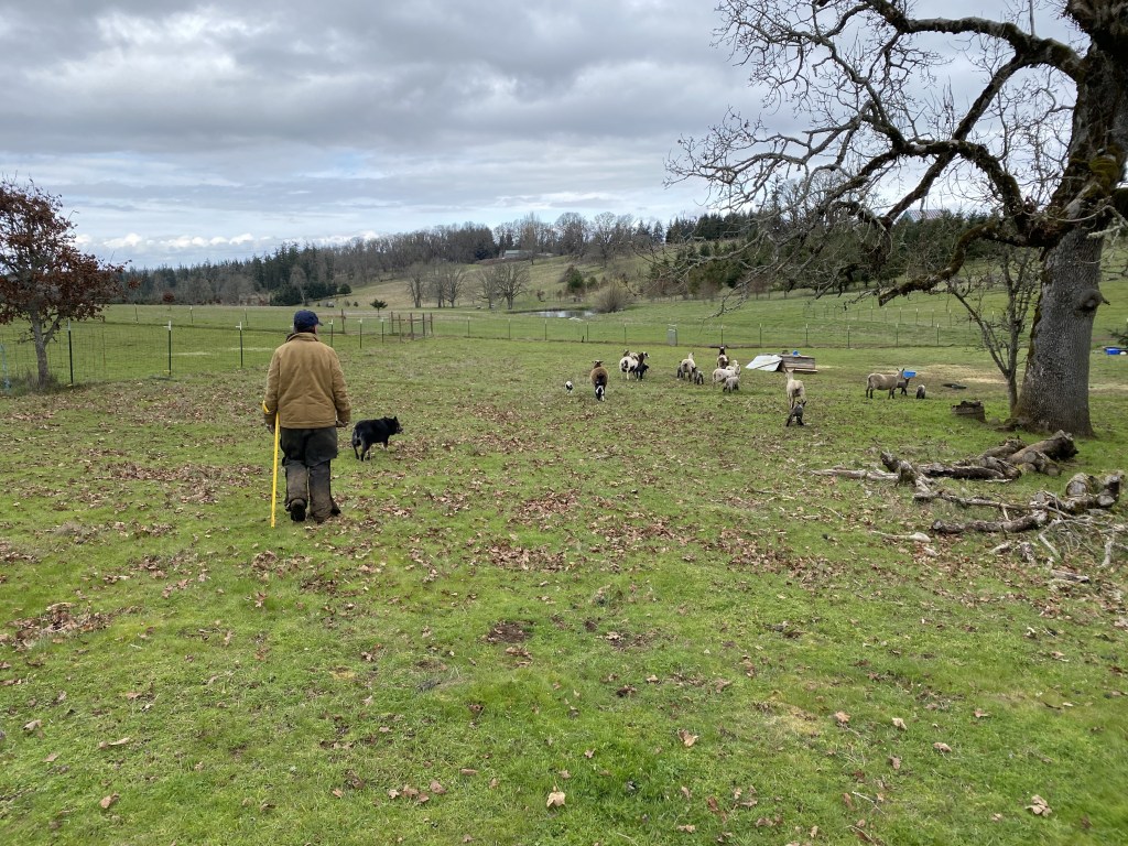 In sorting out the one ewe, Trudy had Wyatt hold the sheep close to the gate while she moved back and forth to spread the sheep out so they’re not in a big clump right at the gate.
