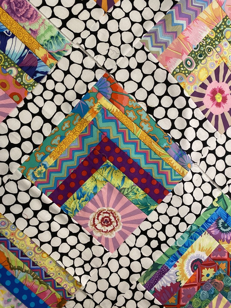 But I did spend a few minutes in my sewing room tonight auditioning some potential backings for my Jumble Starburst quilt. I had a particular piece of fabric in mind for it, but I’m not sure it’s really the best option.