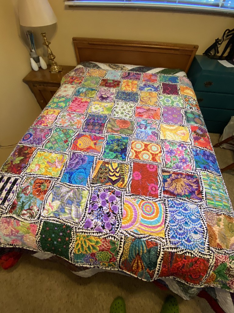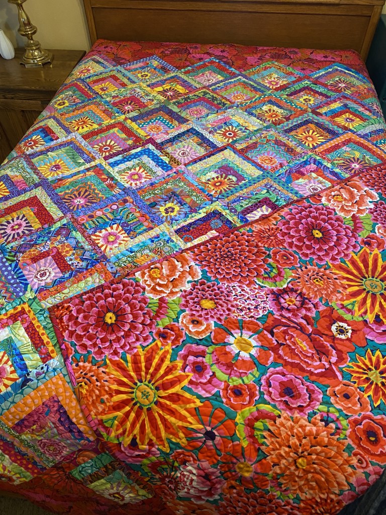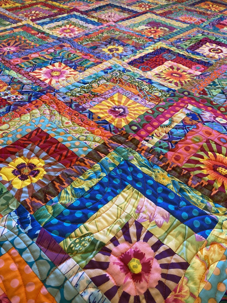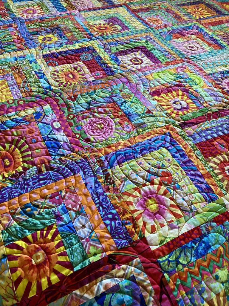 This is the second quilt where I’ve used one of the Kaffe Fassett Collective wide backings and I’m a huge fan. The prints are large and vibrant, and the feel is so soft and luxurious.