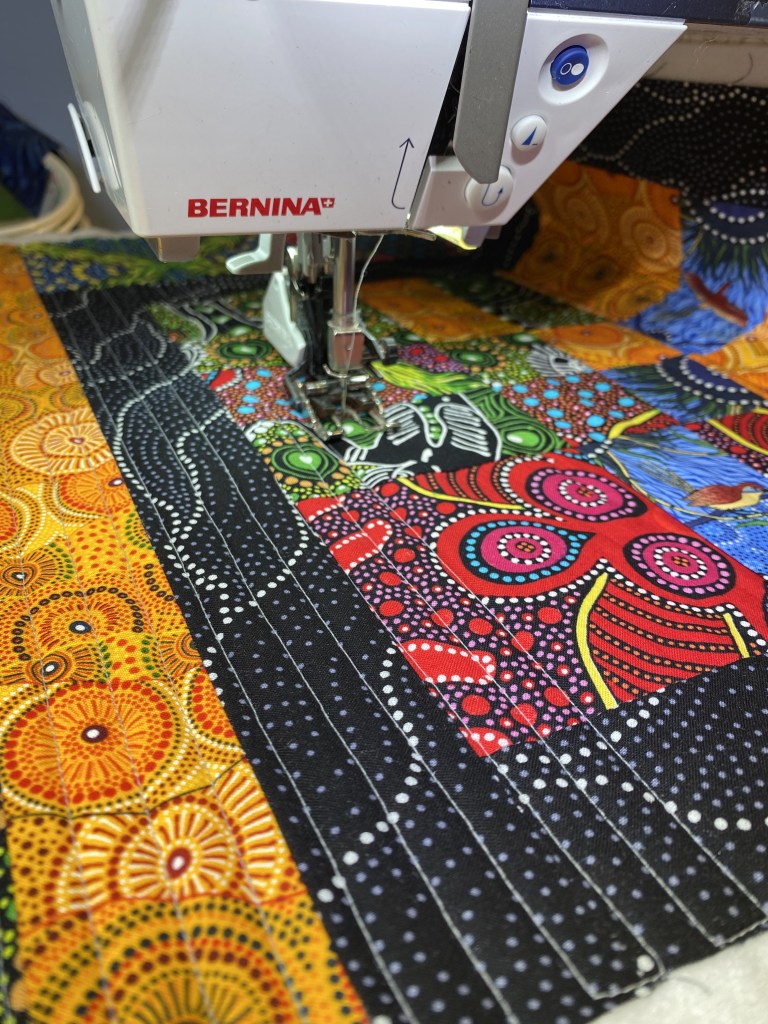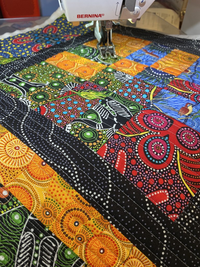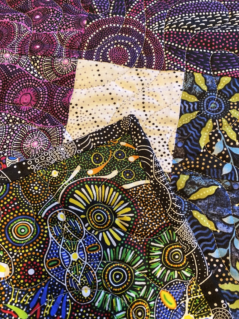 The quilting pattern on this one is Called Malachite and is sort of a wobbly spiral. I used the same design on the Aboriginal fabric quilt I made for my brother a couple years ago. It’s really perfect!
