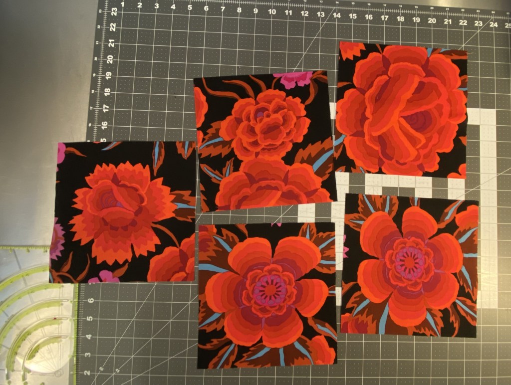 See how pretty those big prints are when you just let the blooms fall where they may? I love them cut in this more casual way. I think this will be a good mix between the formality of the fussy cut pieces and the random blocks.