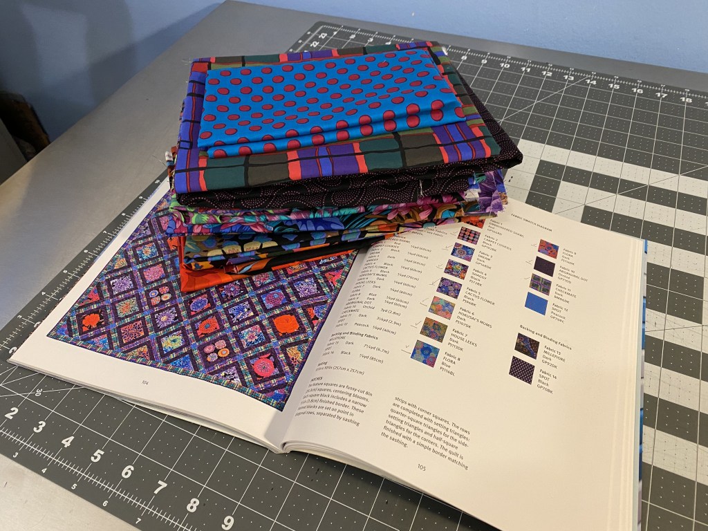 Before I called it quits I decided to do an inventory of the fabrics for the quilt I’ll make when my friend visits next month. The last package arrived today so I have everything I need.