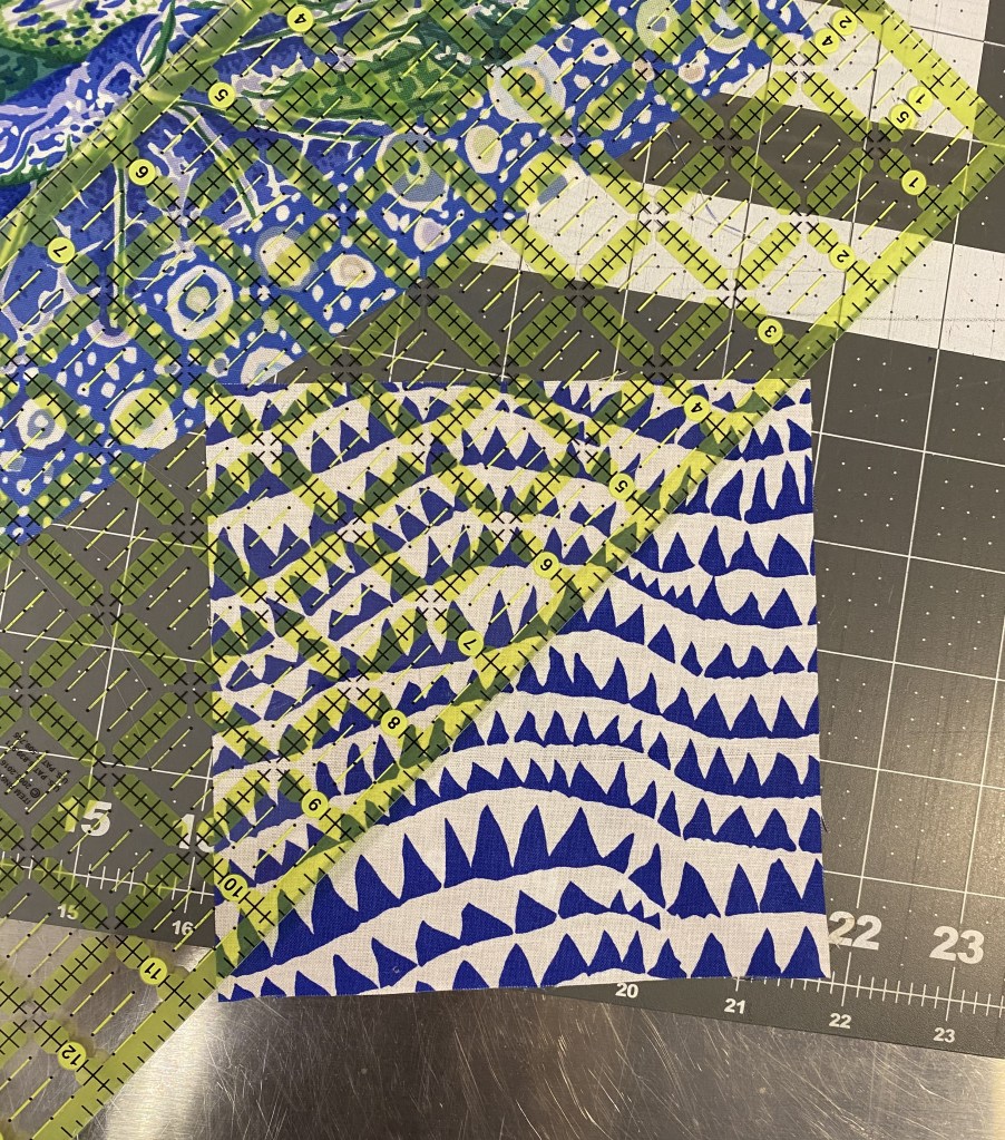 I basically had to line up all the squares of the sharks tooth the exact same way and cut them all on the same diagonal. I took this photo so I could refer to it every time I cut these squares.