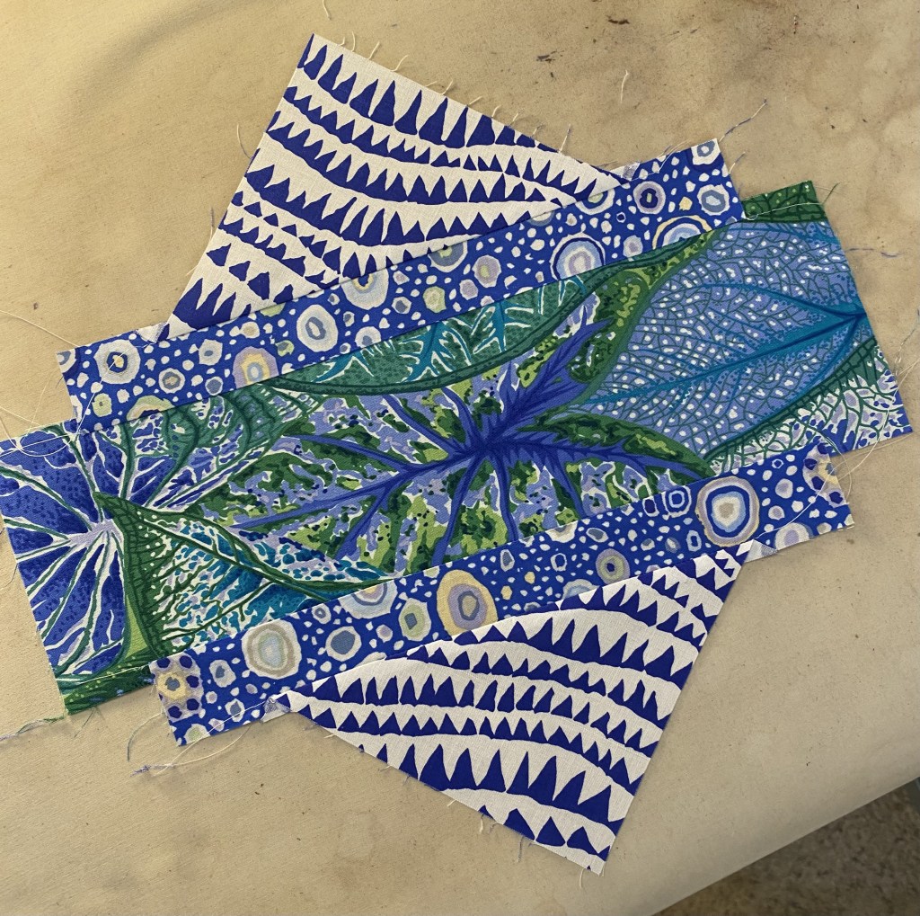 I was looking a group of the blocks that are all made from the same fabric. This is Philip Jacob’s Curly Kale.