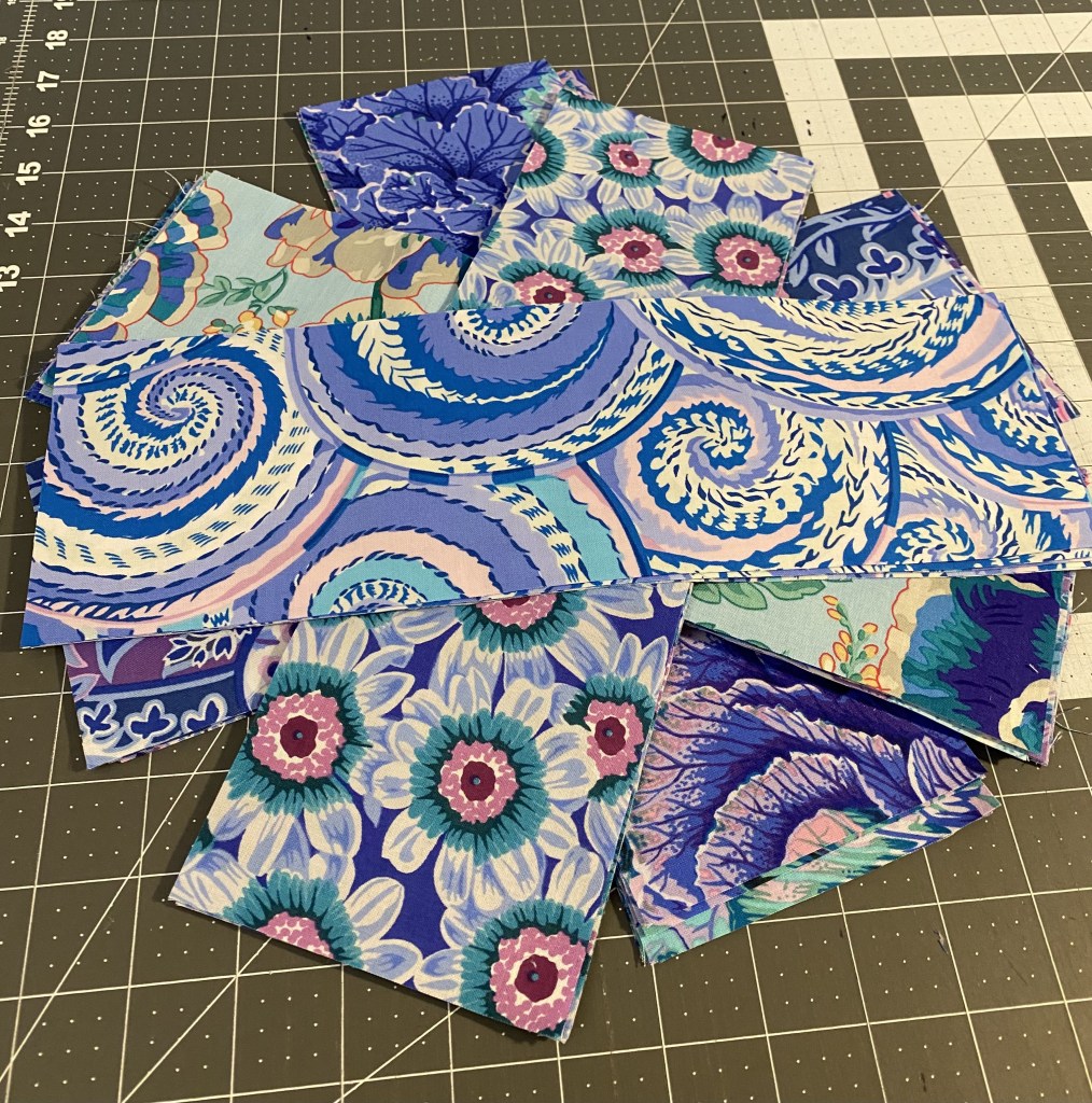 You can see that all the fabrics I selected are a lighter tone and they all have some white in the print. No deep and dark saturated blues in this group. This sort of gives it the airy feeling I want.
