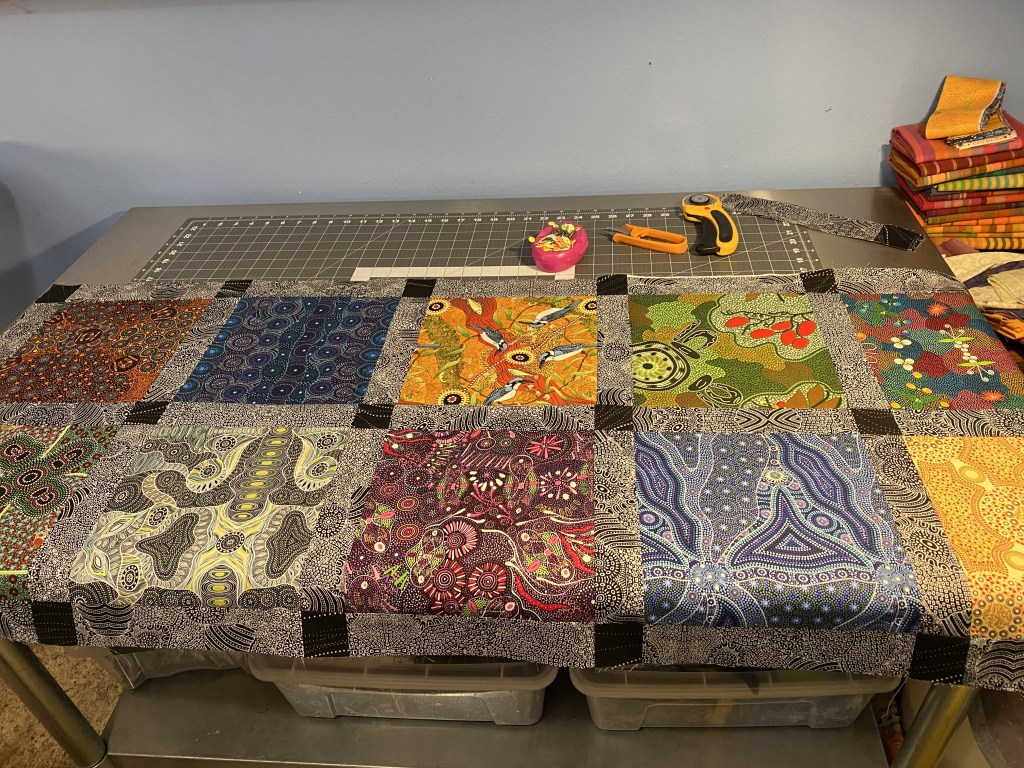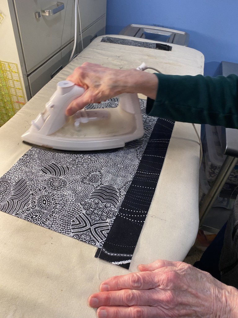 I cut a 10 inch width of fabric strip and sub cut the 1.5 inch strips from that piece.
