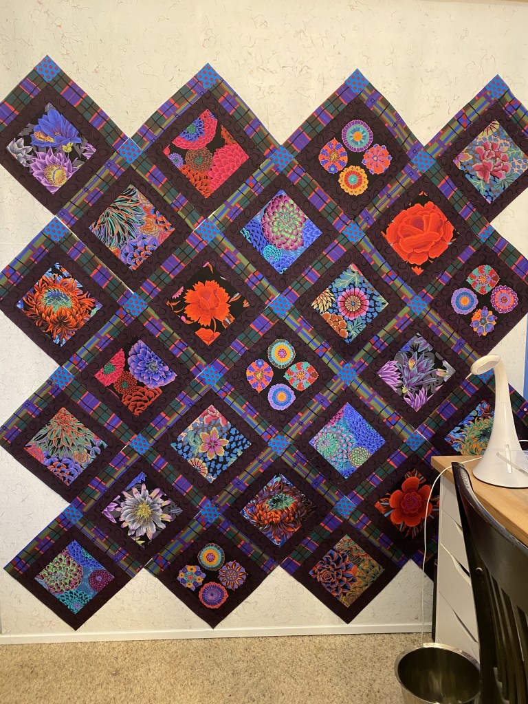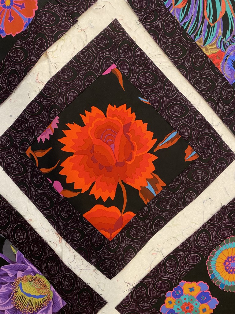 Here’s a list of the blue fabrics I used. They are all Kaffe Fassett Collective fabrics