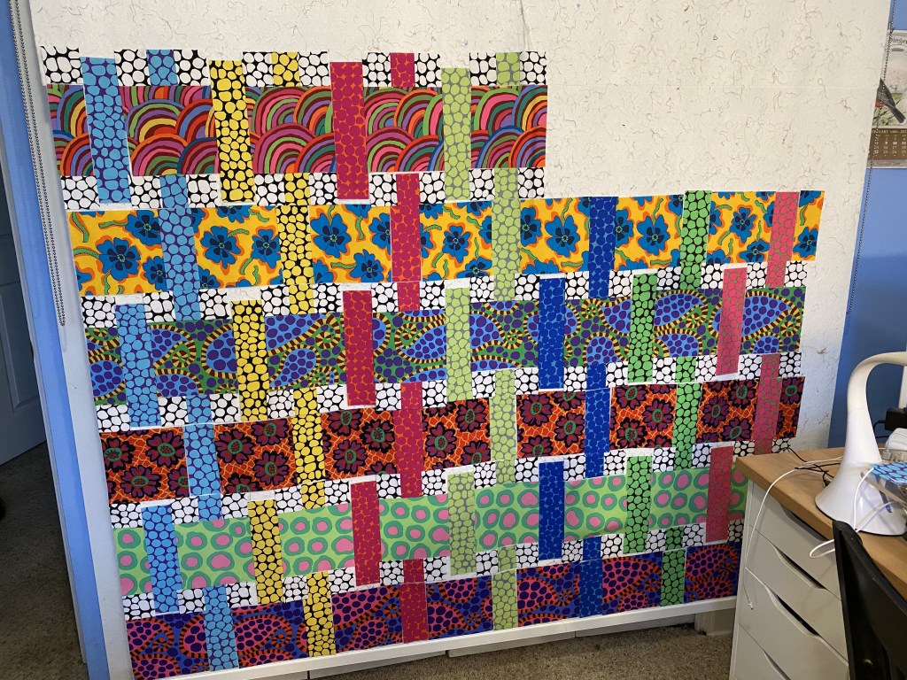 I went and played pickleball this afternoon and when I got home I dug in and started sewing this together. I was able to get four rows done.