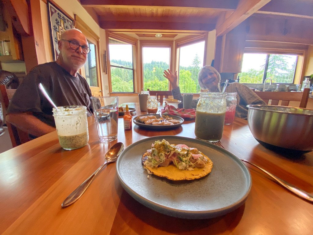 And we gorged ourselves on rockfish tacos made with home made corn tortillas and veggies from my SIL’s gorgeous garden.