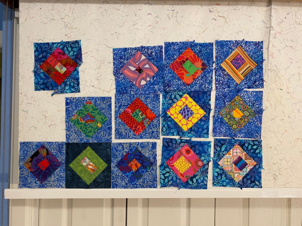 There will be a lot of different indigo batiks once these blocks are all done. It will look quite different once it’s all done.