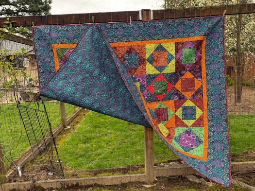 Here’s a closer look of the back and binding. That binding fabric is one of my favorite of these fabrics.