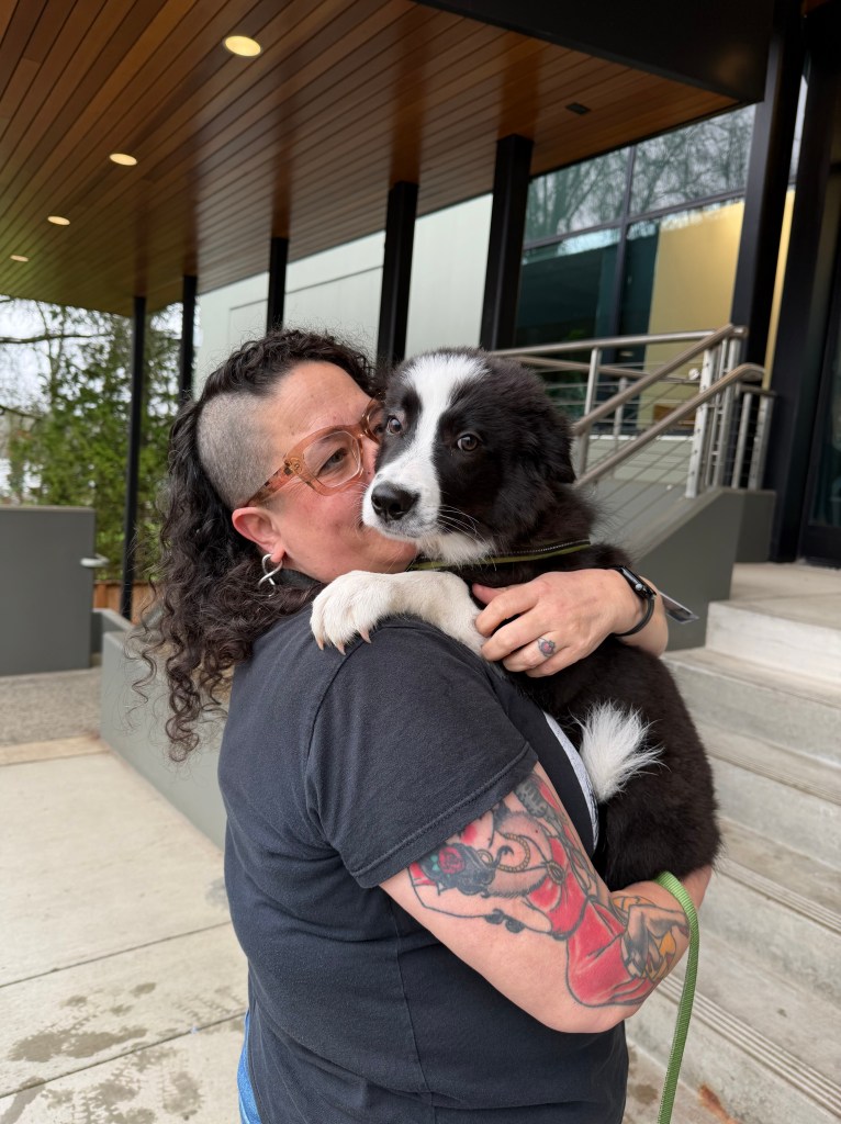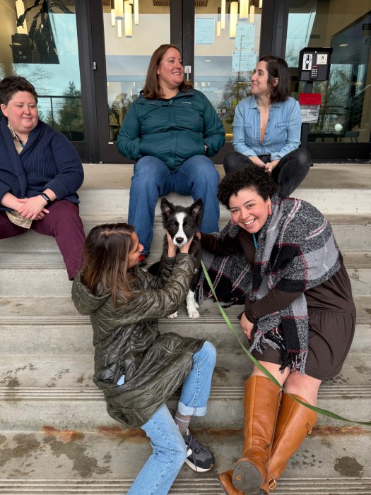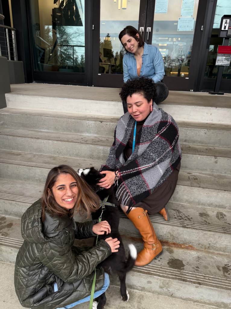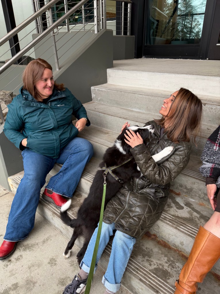 Bruno had a visit with some former co-workers last week. They had been wanting to meet him. He got completely loved up!