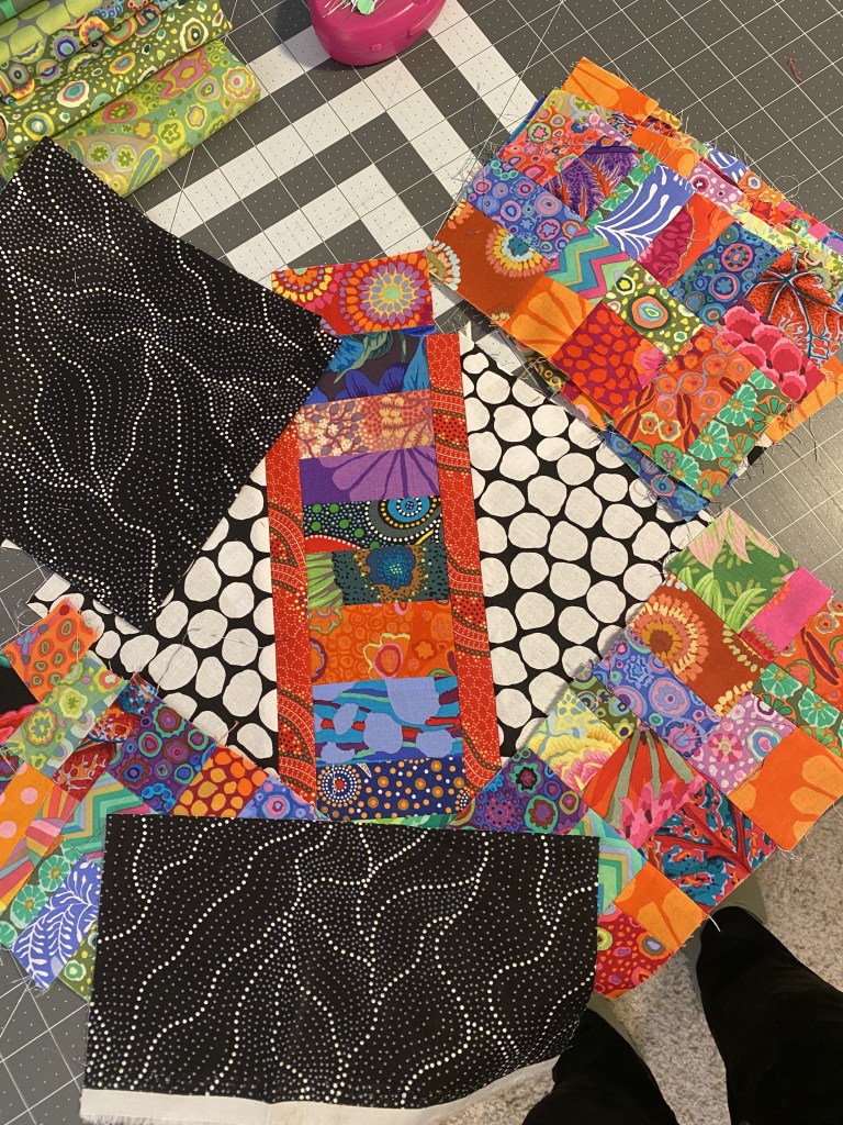 It’s likely we’ll start sewing the Aboriginal quilt rows together some time tomorrow.