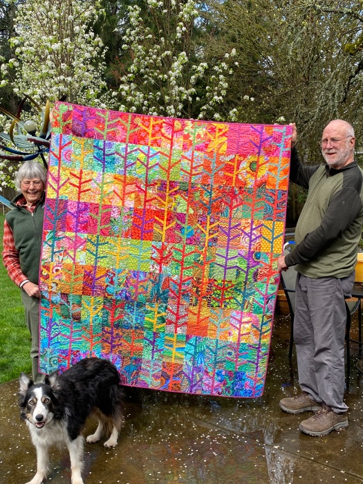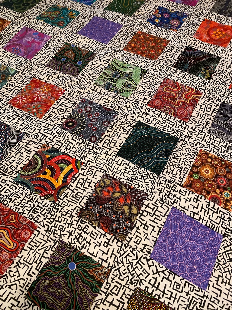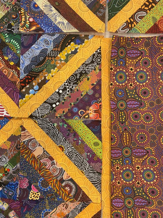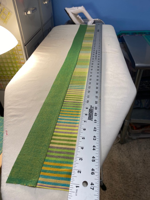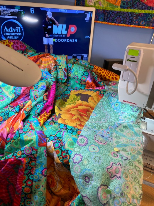 I sewed the victory lap in pieces before the quilt top was all in one piece: top and bottom row, and the side borders. it was so much easier to do it this way rather than dragging all that bulk through the machine.
