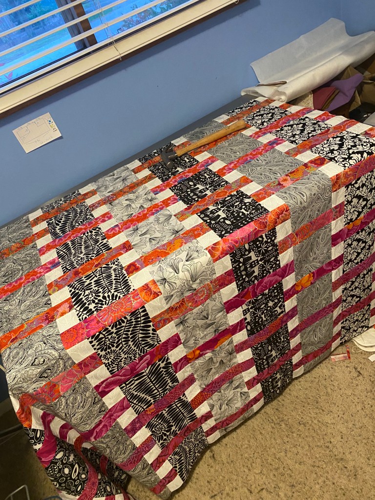 I impulsively started a new quilt top using the black and white fabric scraps. More on that next time.