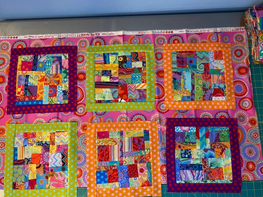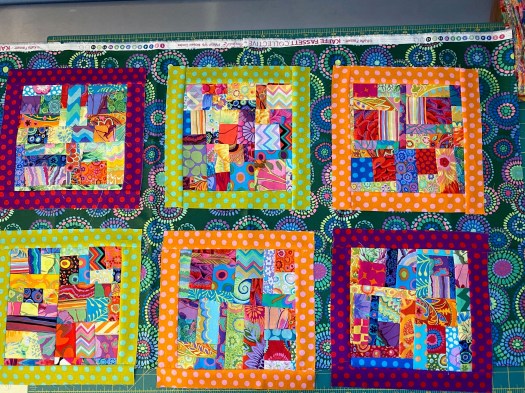 I sew almost exclusively with either batiks or Kaffe fabrics. I make a lot of zipper pouch sets out of batiks and they generate a lot of wonderful scraps. I just love the bright colors and free form designs.
