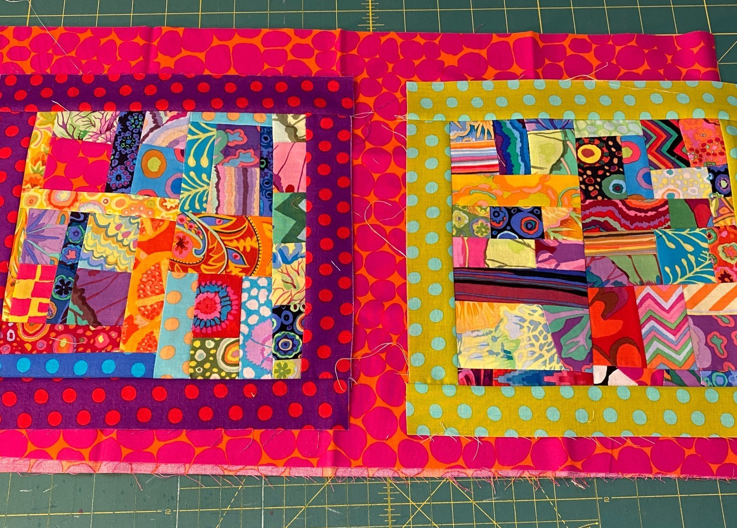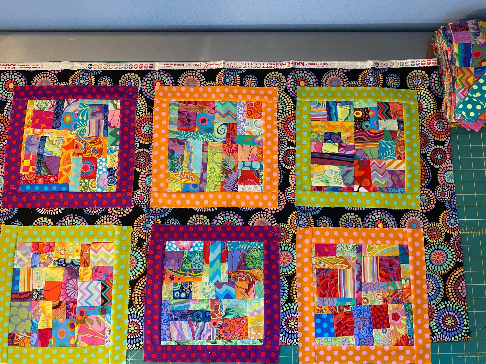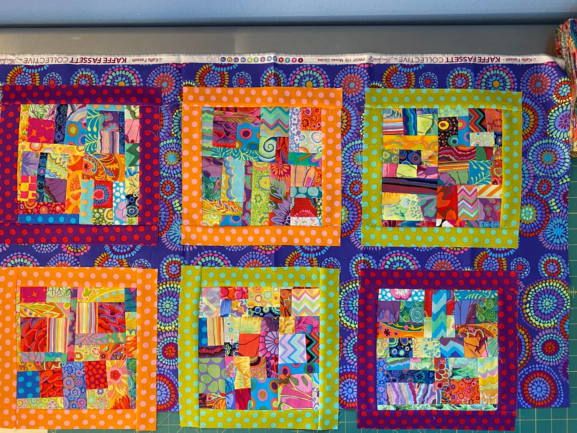 I sew almost exclusively with either batiks or Kaffe fabrics. I make a lot of zipper pouch sets out of batiks and they generate a lot of wonderful scraps. I just love the bright colors and free form designs.